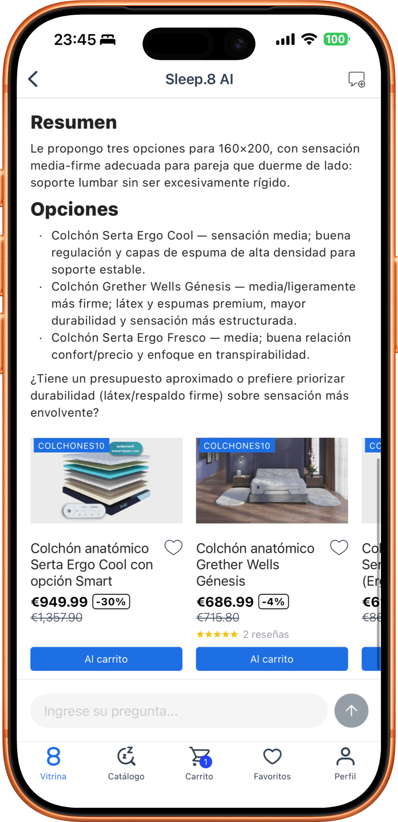 Asistente de IA para e-commerce que acompaña al cliente en todo su recorrido.