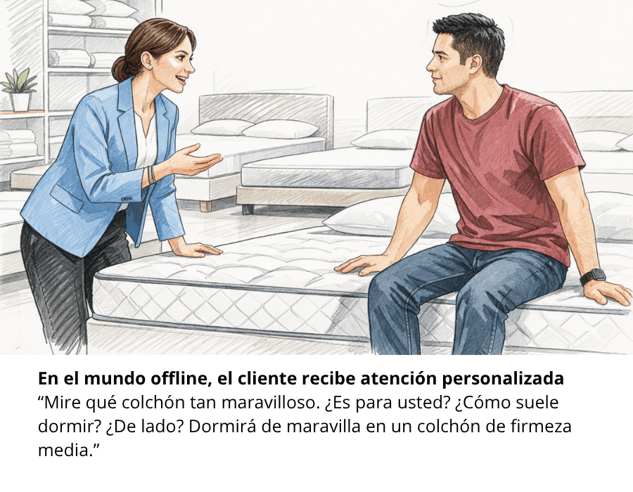 Entiende al cliente, hace las preguntas correctas y recomienda productos.